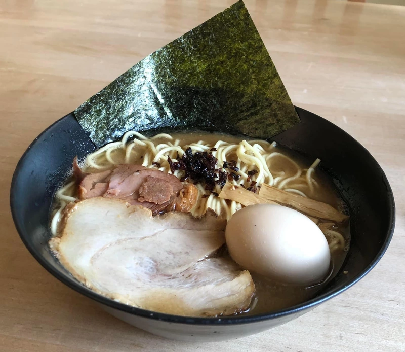 トッピングはバラチャーシュー4枚とメンマに、自前でネギ、ゴマ、おろしニンニク、もみ海苔、そして先日手製の握り寿司に合わせて自作していたガリを刻んだ紅じゃないショウガを追加。