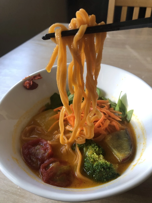 麺(125g)はパプリカを練り込んでいるそうで、スープとの親和性が高く、一体感があります。