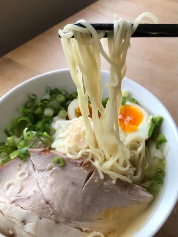 麺(150g)は中細ストレート。かために茹であげるとパッツンパッツン。