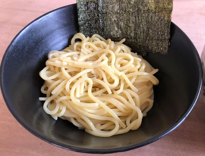 三河屋製麺との共同開発の特注麺は、とみ田のと比べてやや細めの中太ストレート。