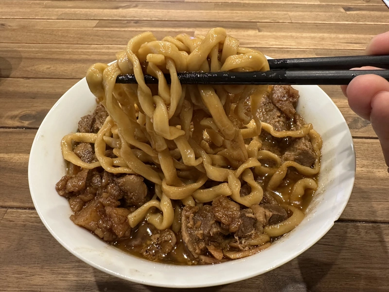 生卵とライスは必須で、麺は生卵につけてマイルドに味変。ゴロゴロと入っている肉、玉ねぎ、ニラなどの具材はライスに乗せて食べる為に計算されたかのような量で最初から最後まで美味しく楽しめます。
