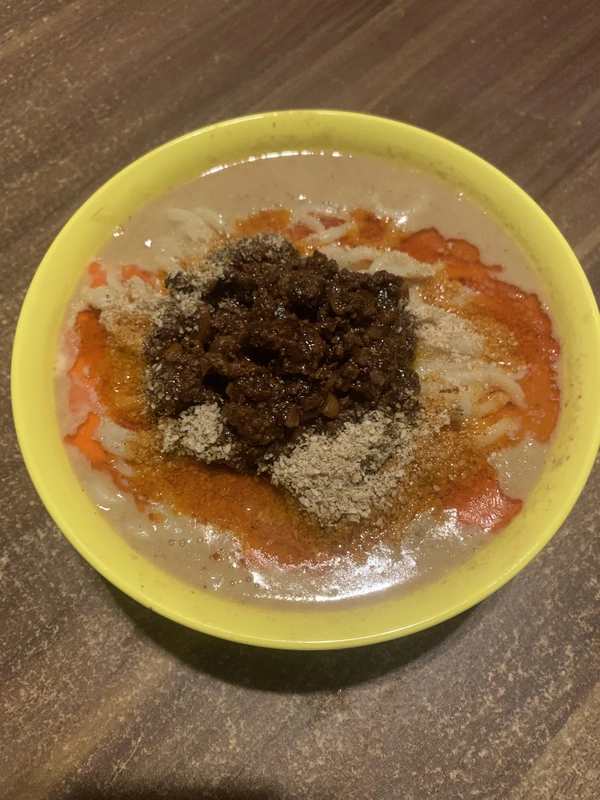 ベースがこちらのラーメン屋さんスープなので坦々麺味より先に豚骨がきた