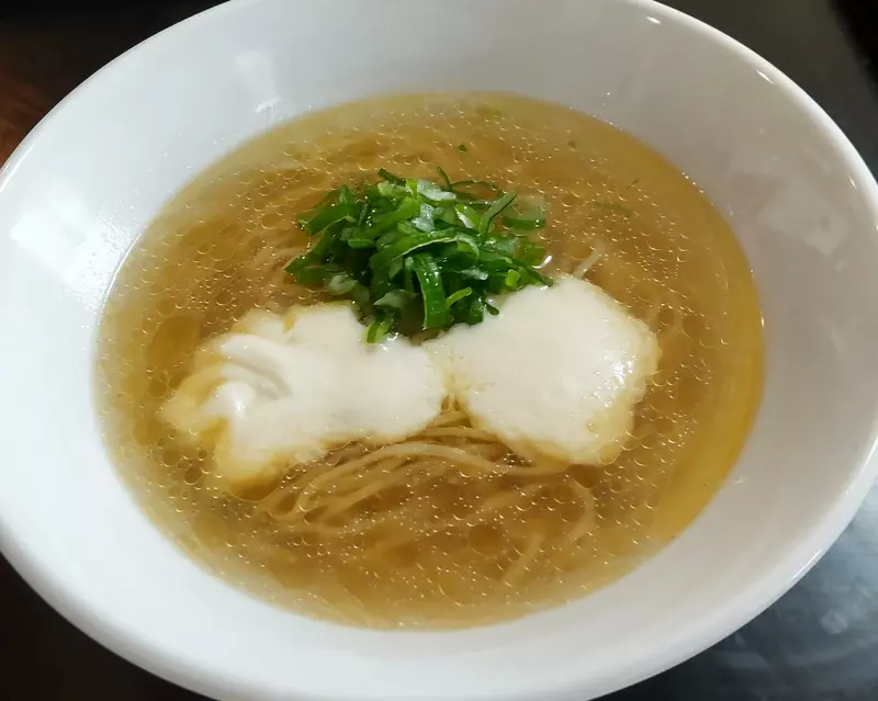 いりこ(煮干し)と動物系、鶏油、昆布等魚介のマリアージュ。