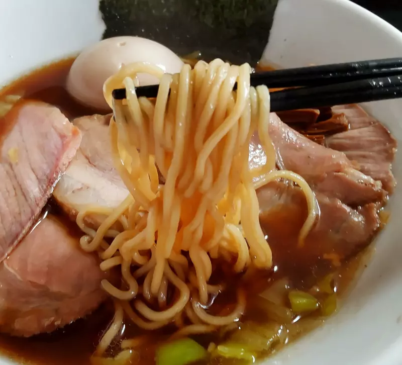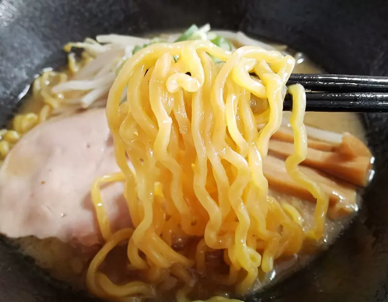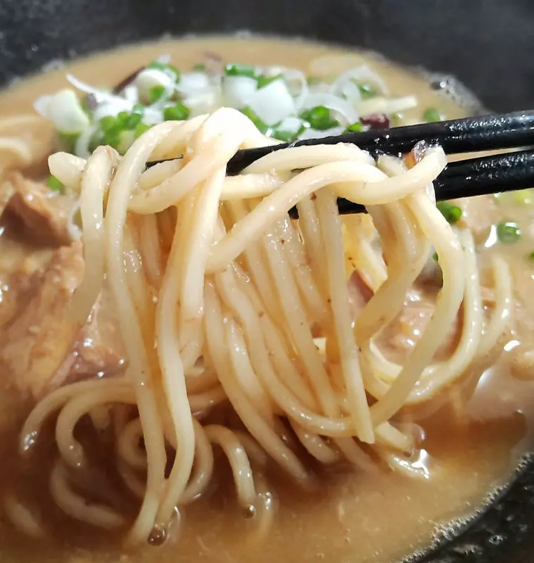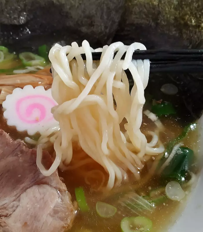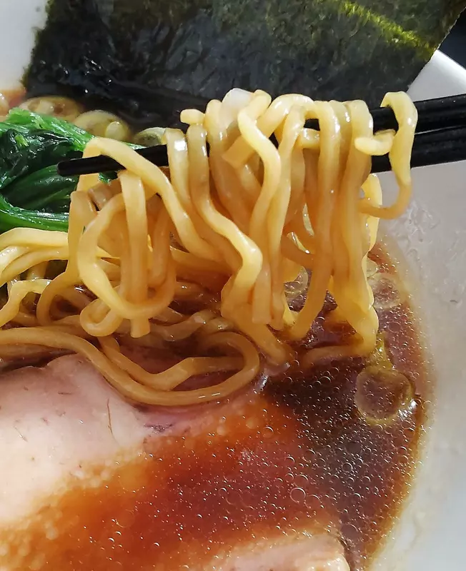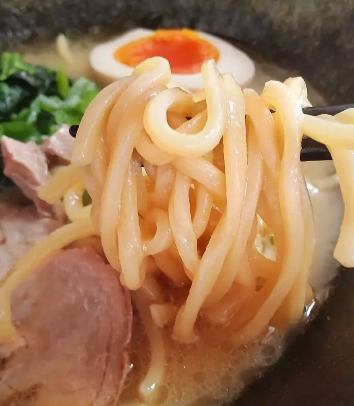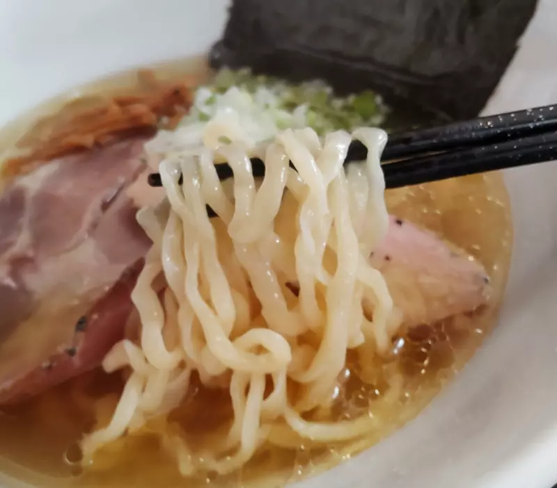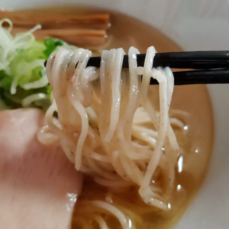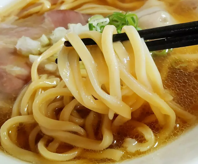 もちもち感と適度な歯ごたえ、喉ごしでスープとの絡みも良く相性抜群。