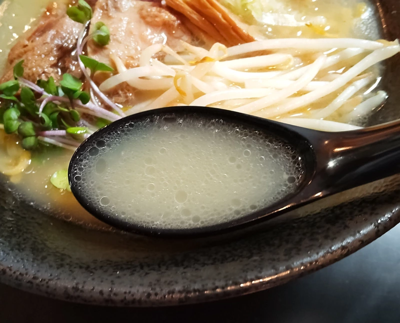典型的な豚魚感で目新しさは特に感じないが動物系と魚介系の融合バランスに優れ抜群に旨い。