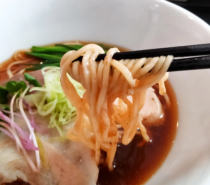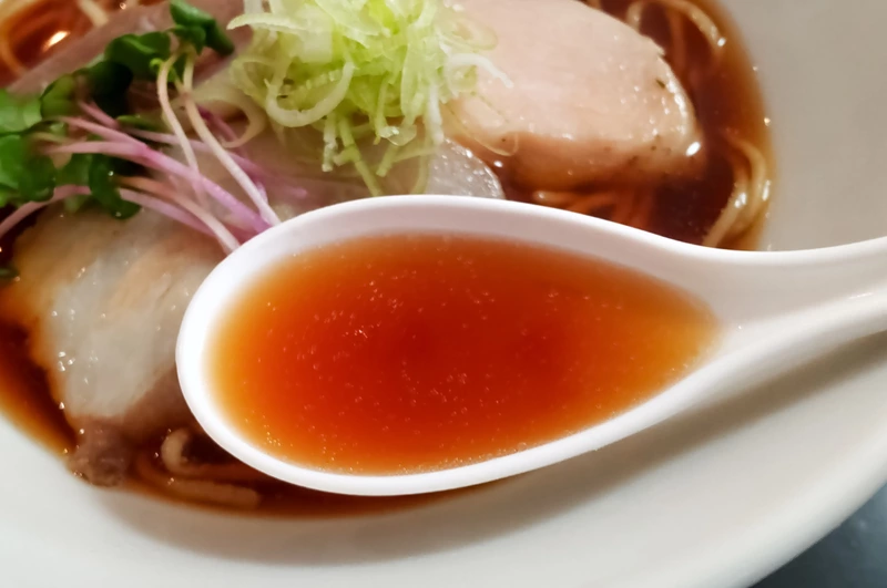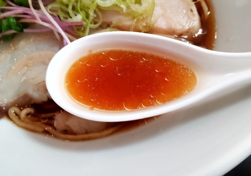 見た目は美しい琥珀色の淡麗醤油フォルム。