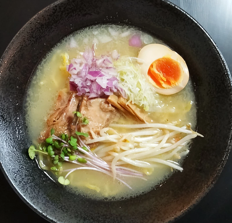 赤味噌感はなく白味噌と動物系の融合、野菜の甘味とコクがあって美味しい優しい。