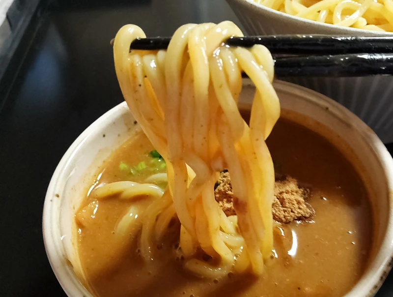 つるしこ中太麺との相性、つけだれの持ち上げも抜群で、並ぶの嫌いなので実店舗は未訪ですが、行ってみたいと思う美味さです。