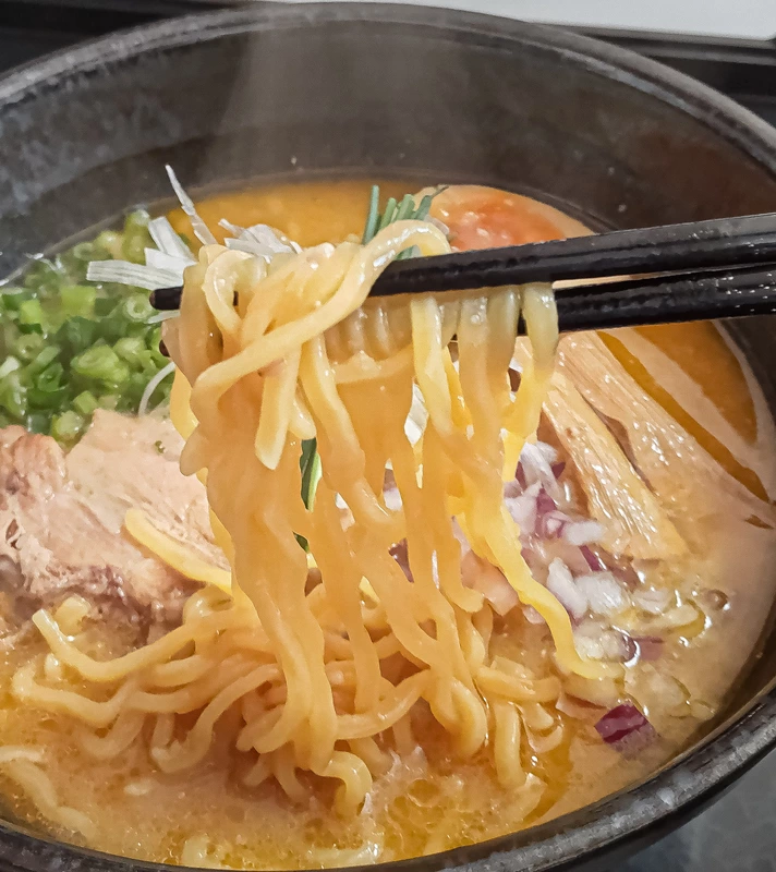 ちょっと味噌煮込みうどん麺っぽさもあって、モチモチでうまい。