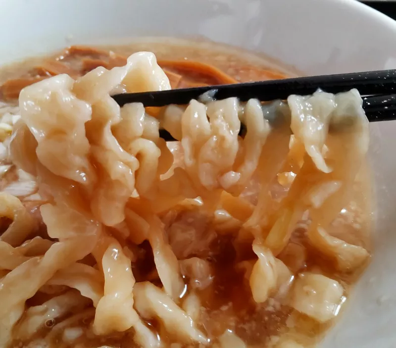 麺は太めの縮れ麺で、タピオカ練り込み。