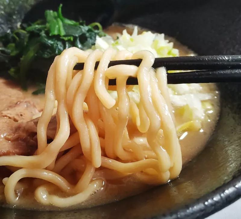 今まで食べた家系の中では太い方かな。