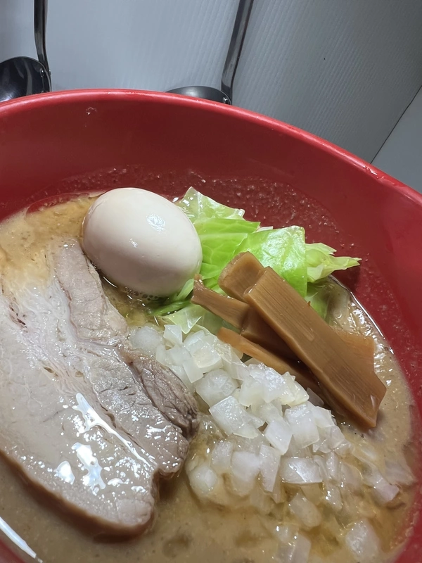 おすすめトッピングのキャベツが、心地良く、スープの塩気がキャベツの味(甘味)を引き立てて必須だな、と感じました。