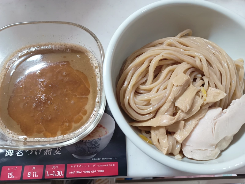 粉がとても多くて海老の香りが良いものの、どれだけ混ぜても温めても粉っぽさが残るので、喉越しが悪い。