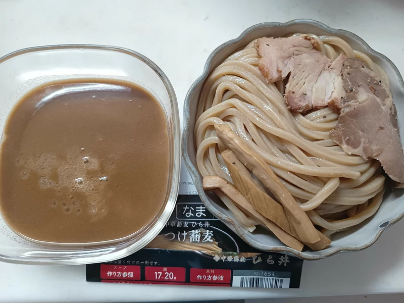 基本のつけそばの麺とスープが同じ。そこに海老の油と粉を入れたもの。