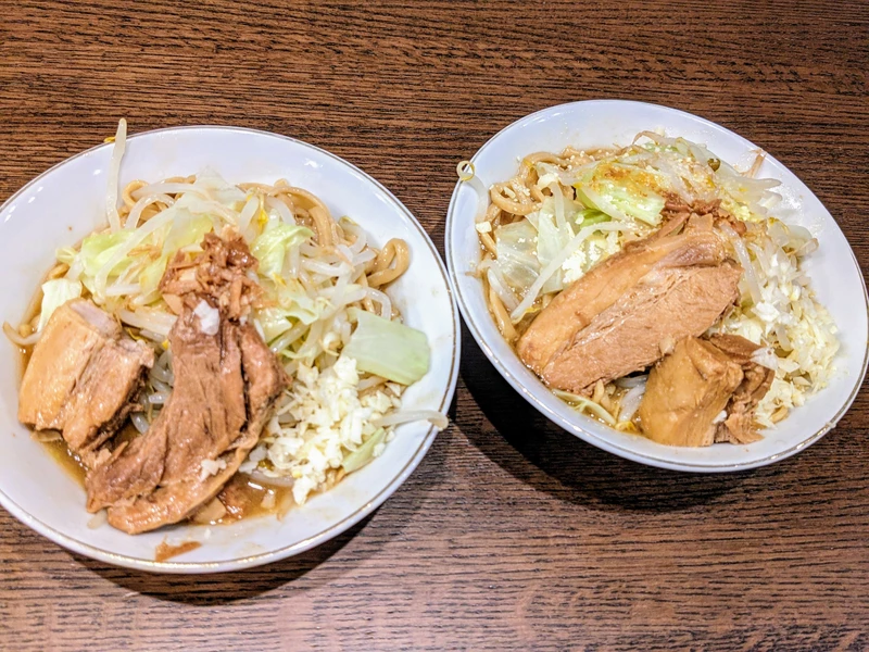 ワシワシ麺やデカ豚やしょっぱうまアブラは通常の一杯と同じ大満足クオリティでした。