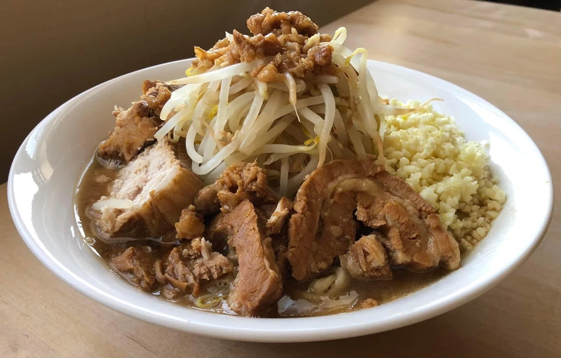 ヤサイニンニクアブラブタマシカラメでいただきます。