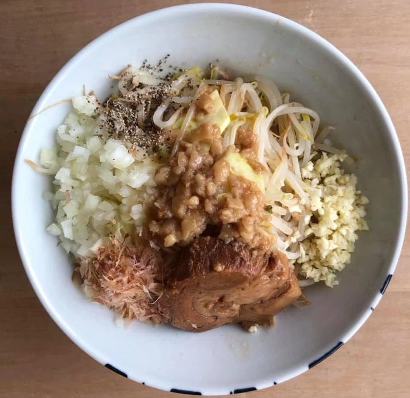 2023年07月24日 俺の生きる道 白山店 ラーメン汁なしver(味付き脂付き)(二郎インスパイア汁なし・豚骨醤油) 全ての具材と味が絡み合って激ウマ モヤシ、キャベツ、刻みタマネギ、ブラックペッパー、鰹節は自分で用意して、 ヤサイアブラニンニクカラメ。カラメはブタを自作した際の副産物。 麺(290g)はやや平打ちの極太麺で香り高く美味い。 タレは薄くも辛くもなく丁度良い濃さ。 極厚豚はトロットロ。 混ぜ混ぜして全ての味が絡み合い、めちゃくちゃ美味い。 当然完食です。Good Job! 2 役に立った レビューを共有