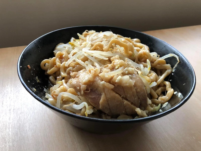 2023年07月24日 ハイマウント まぜそば(二郎インスパイア汁なし・豚骨醤油) 自分史上トップクラスのまぜそば ヤサイニンニクアブラマシ、トッピングは付属のベビースター、フライドオニオン、かつお節に加え、茹でもやし・キャベツと刻みタマネギ、ニンニク、卵を準備。 トッピングが多いので慎重に混ぜ混ぜしてから実食。 麺は浅草開化楼の極太ちぢれ麺(195g)。 小麦の風味が最高で、長めに茹でたのでワシワシとモチモチが併存。 何よりブタのデカさにびっくり! 女性のこぶし大ほどの大きさで、しっとり柔らか、味の濃さも丁度で、宅麺で食べた中で1位の美味さ。 それぞれのトッピングもいい仕事をしており、自分史上1、2を争うまぜそばでした。 0 役に立った レビューを共有