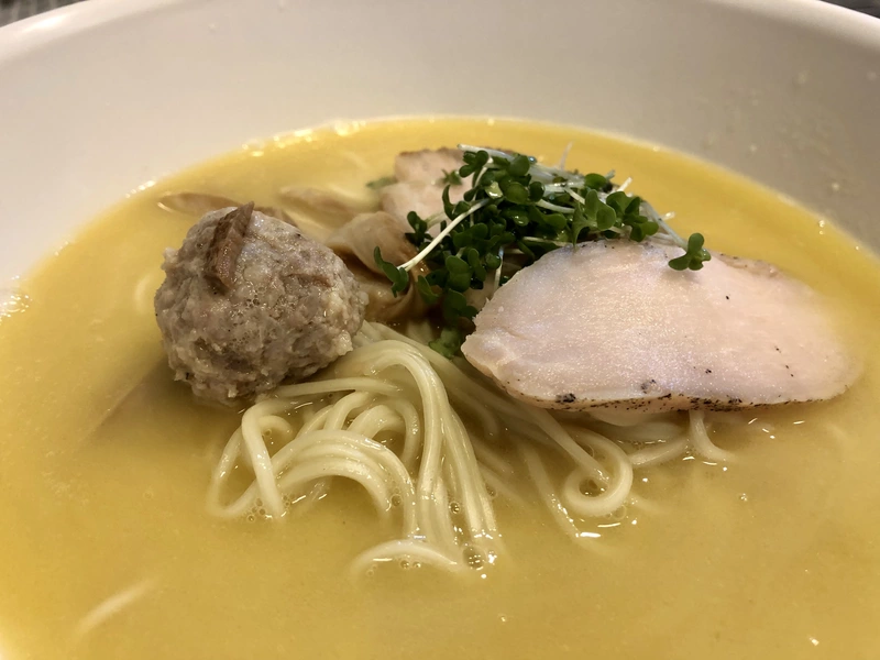 2023年08月03日 麺屋くまがい 濃厚塩鶏そば(ラーメン・鶏白湯) 全国でもハイレベル あっさり こってり 薄味 濃い味 細麺 太麺 まろやかながらキレもある鶏白湯。 色合いは黄色に近く、見た目から旨そうなスープ! モミジを中心とした鶏構成に、香味野菜、魚介のうまみをバランスよく配合した感じで、 強烈な鶏ポタというよりも、少し全体の味のバランスを重視した設計かなと。 うまいです。最後まで飽きずに頂きやすい。 麺も少しパツンとした印象を感じさせる、加水低めの細麺。宮城県産の夏黄金を使用しているようで、伸びにくいように卵白も加えられているよう。こいつは…どこかの特注麺かもしれないが、スープとの相性は突き抜けて高いのでは?と思わせるレベル! 具材の鶏団子、バラチャー、鶏胸チャー、全てうまいし… 全国で見てもハイレベルな鶏白湯であることに疑いはない一杯! 1 役に立った レビューを共有