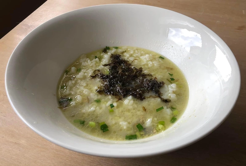 岩海苔やチャーシュー、ネギも味わいながら、麺を完食したところでライス割り。