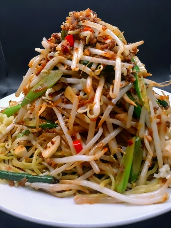タレは濃い口の醤油ベースで、ニンニクと唐辛子の効いた付属の辛口挽き肉と自前のもやし&ニラを炒めて調理します。