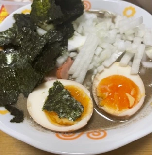 チャーシューと味付けたまごと玉ねぎと海苔を乗せて食べましたが本当にしっかりとお店の味でびっくりしました!