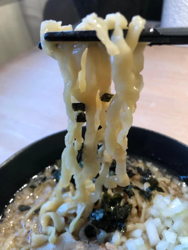 麺は極太平打ち縮れ麺で、170gとボリュームも十分。