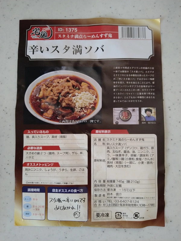 通常のスタ満そばに感動して辛いのを注文!