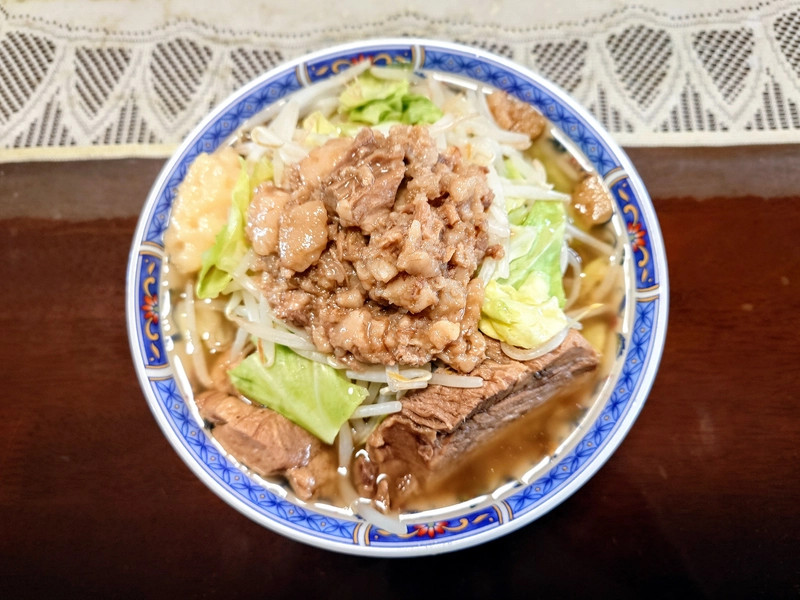 2024年06月16日 ラーメン富士丸 元祖ブタカスアブラ富士丸(小)(二郎インスパイア・豚骨醤油) 意外とバランス重視 あっさり こってり 薄味 濃い味 細麺 太麺 店舗未実食なので宅麺で初実食。 追加トッピングは、キャベツ・モヤシ・ニンニク。 野菜の水分が出るのを嫌い耐熱容器でレンチンして蒸し野菜に。 スープは液体脂多めの非乳化で量もたっぷりめ。 ブタカスアブラは別皿ではなく上から振りかけた。 麺は5分半くらいの茹で時間でゴワワシ食感で小麦の香りもしっかり。 豚は赤身主体でやや固めだが、肉感みっちりで食べ応えあり。 全体の感想としては、ややボリューム少なめだがバランスは良し。 生卵や長ネギを追加してもよさそう。 味が濃いめなので、つけ麺アレンジも面白いと思う。 あるいは麺を長めに茹でてデロ麺にするのもアリ。 0 役に立った レビューを共有