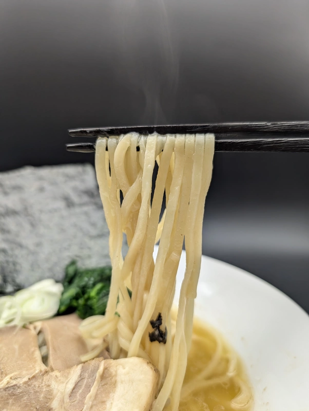 スープとの相性も抜群で、まったりとしたスープの塩味、旨味、酸味の後に、麺の甘味が余韻として残ります。