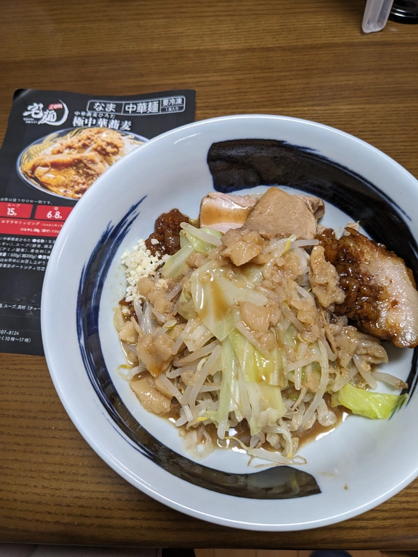 麺:6分、トッピング:もやし、キャベツ、刻みにんにく