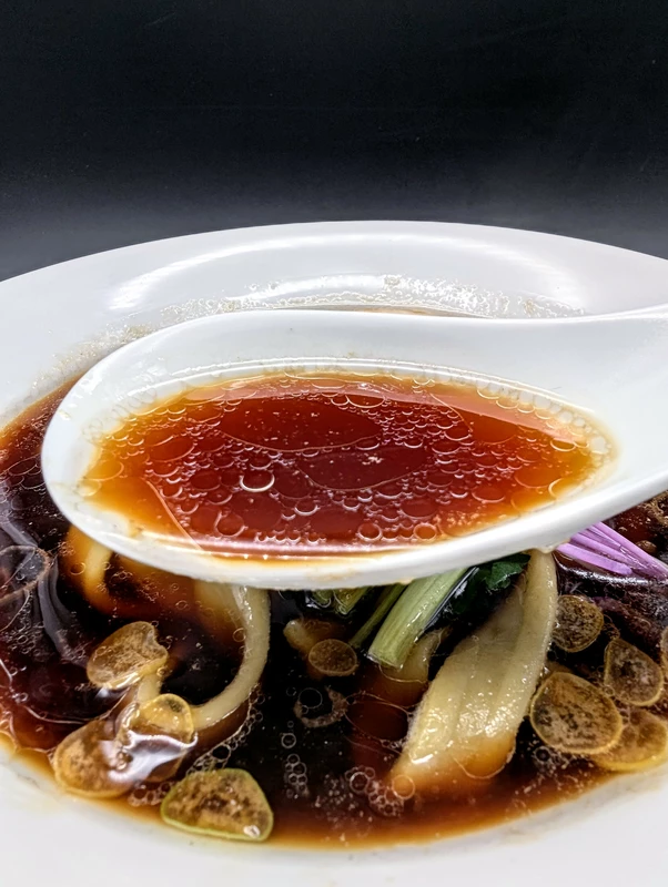 香味油からは鴨が明確に漂い、塩分濃度は約1.5%とやや低めながら、出汁のふくよかな旨味と醤油の深いコクのある、滋味深い穏やかな味わいとなっています。