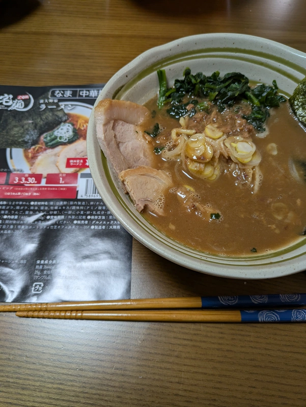 2025年03月01日 裏大輝家 ラーメン(ラーメン・家系) 濃厚しょっぱうま家系 麺:3分、トッピング:ほうれん草、刻み長葱 スープは濃厚でガラ感、臭みもあります。更にしょっぱいのでガツンときます。自分的にはこれこそ家系といった味で、にんにくと白ご飯との相性も最高!近所にはクリーミー系が多いので有り難い商品でした! 2 役に立った レビューを共有