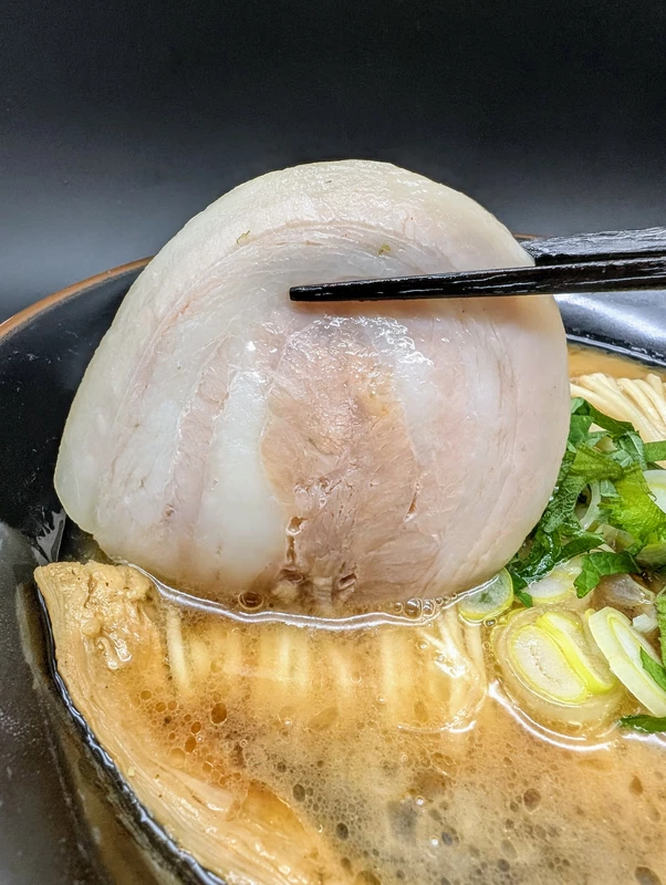 ギッチリと強く均一に巻かれているため、ハムのような食感というか工場生産感がありますが、甘味の主張した味付けで脂身も多いので、スープに浸しておくと緩やかに味変の役割を果たします。
