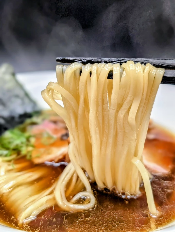 麺肌は滑らかで、コシ、ハリ、ノビのある食感に加え、麺自体の旨味やスープの持ち上げも申し分なく、