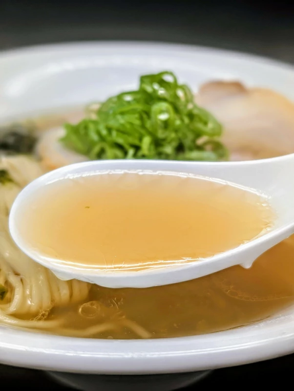 スープはタイトル通りの淡麗貝出汁塩味。やや濁りのある清湯タイプですが、Brix値は約23.0%と高く甘口で、塩分濃度も約2.0%と全体的に濃い目です。帆立に含まれているグリシンの甘味が効いていますね。