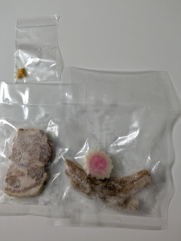 付属の具は叉焼1枚とメンマとナルトと柚子皮。