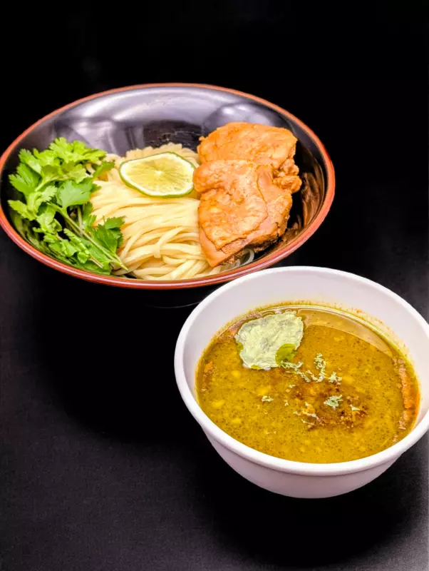 1つは塊のままかぶり付き、もう1つは細かく解して麺とスープに絡めて頂くと、鶏チャーの味を余すこと無く活かす事が出来ます。