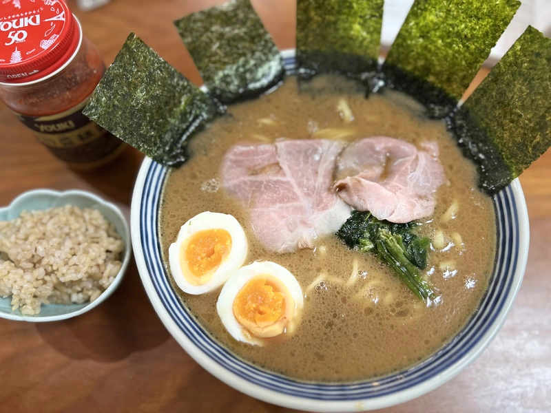 2025年12月12日 麺家 たいせい ラーメン(ラーメン・家系) ★4.1 今回も美味しく頂きました。家系初心者でありながら、ハマりにハマって家系ばかり頂いています。こちらは直近で頂いた裏武蔵家さんと比較すると、スープは上品に纏まっているイメージです。私は最初からガツンとくるスープが好みなので、二口目からニンニク、豆板醤はスープに混ぜました。個人的には入れて丁度よくなった感じでした。海苔5枚はやっぱり有り難いです。焼豚は薄いタイプでした。全体的に上品に纏まっていて美味しいですが、もう一息パンチが追加されたら嬉しいな、と感じる一杯でした。ですが、当然自宅で頂くには充分満足です。ご馳走様でした。 0 役に立った レビューを共有