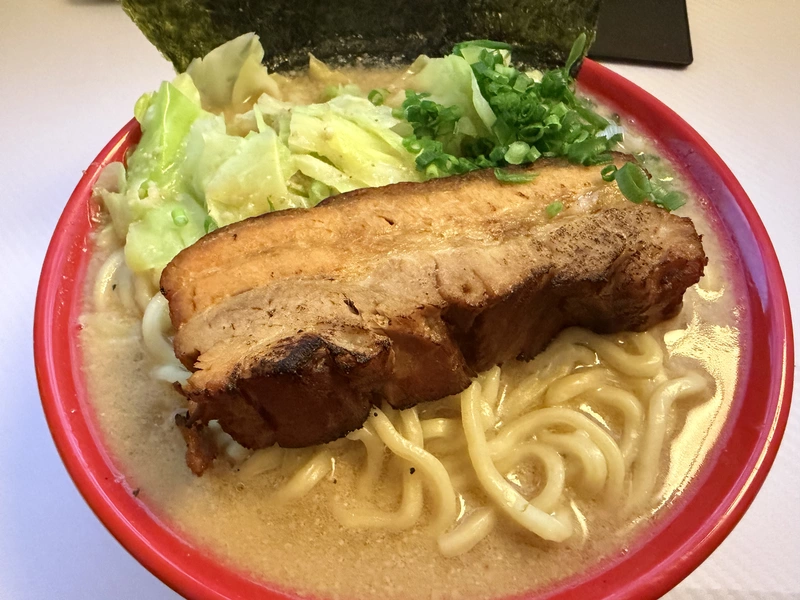 太い麺に甘くしっかりした味噌スープ。にんにくがとてもよく合う。