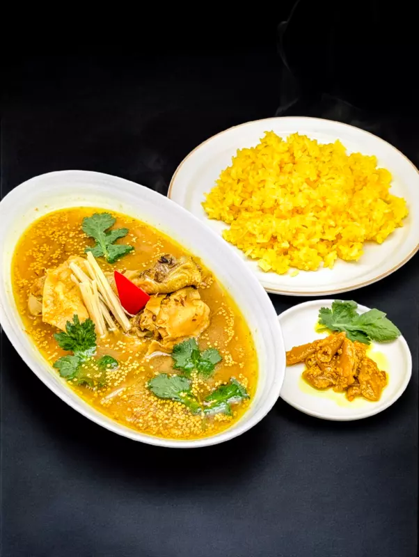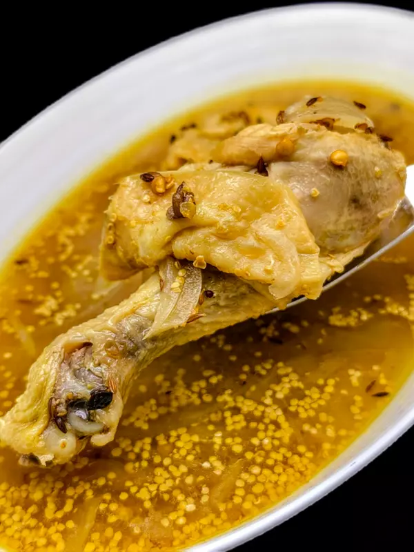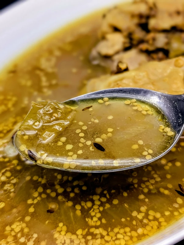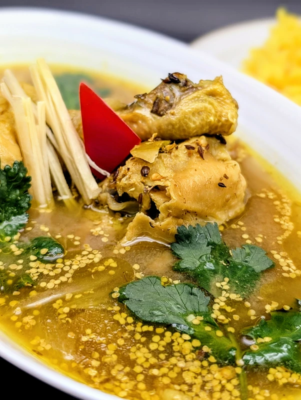 酸味はツンとした強みはなくまろやかで、コラーゲンの溶け出した鶏の旨味と深いコク、玉葱の甘味やクミンの香りも土台にありますが、