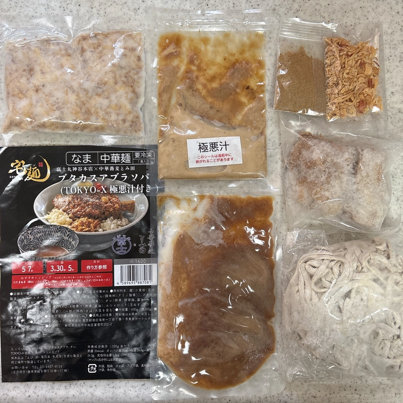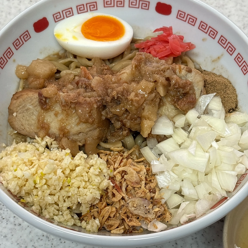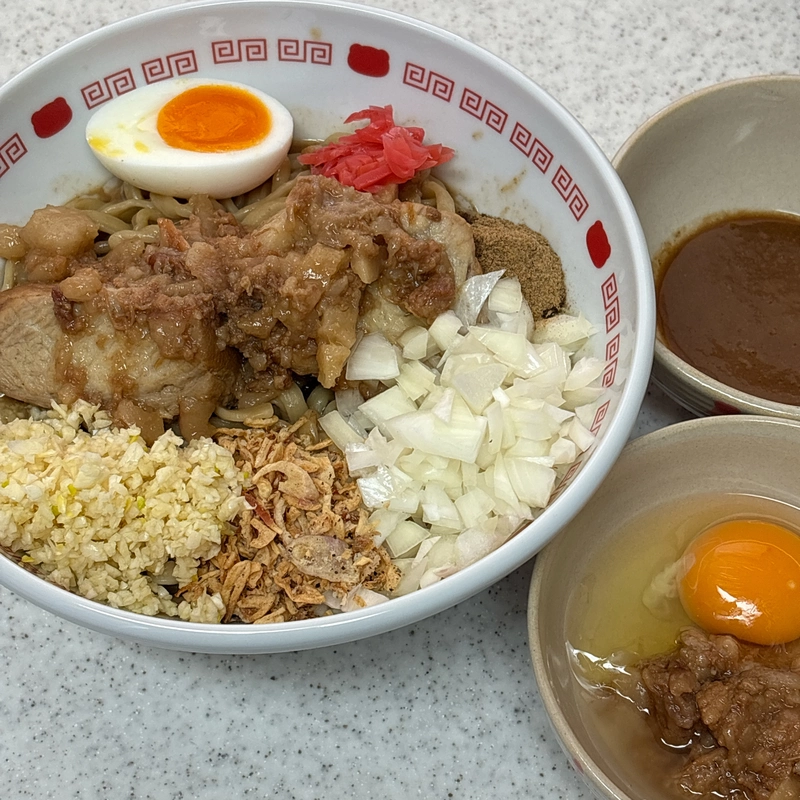 2026年02月23日 富士丸神谷本店×中華蕎麦 とみ田 ブタカスアブラソバ (TOKYO-X極悪汁付き)(二郎インスパイア汁なし・魚介豚骨) 脳天直撃の塩っぱさな極悪汁! あっさり こってり 薄味 濃い味 細麺 太麺 濃厚な豚骨ダレに極太ゴワゴワ麺を絡めるとブタカスアブラの甘味と旨味が良い感じに纏わりついてめちゃくちゃ美味しいやん😆 極悪汁は想像以上の塩っぱさで軽く漬けて啜るだけで脳天直撃の衝撃を受ける‼️ 脂とたまごを混ぜた脂たまごにつけながら食べると味がマイルドになって最高💯 ボリューム満点で大満足な一品やね! 0 役に立った レビューを共有