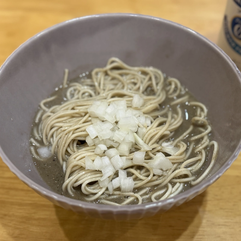 ちょっとドロ系の煮干しです。エグみほぼなしで食べやすいタイプ。スープが麺に絡んで、とても美味しいです!玉ねぎは是非入れてください。