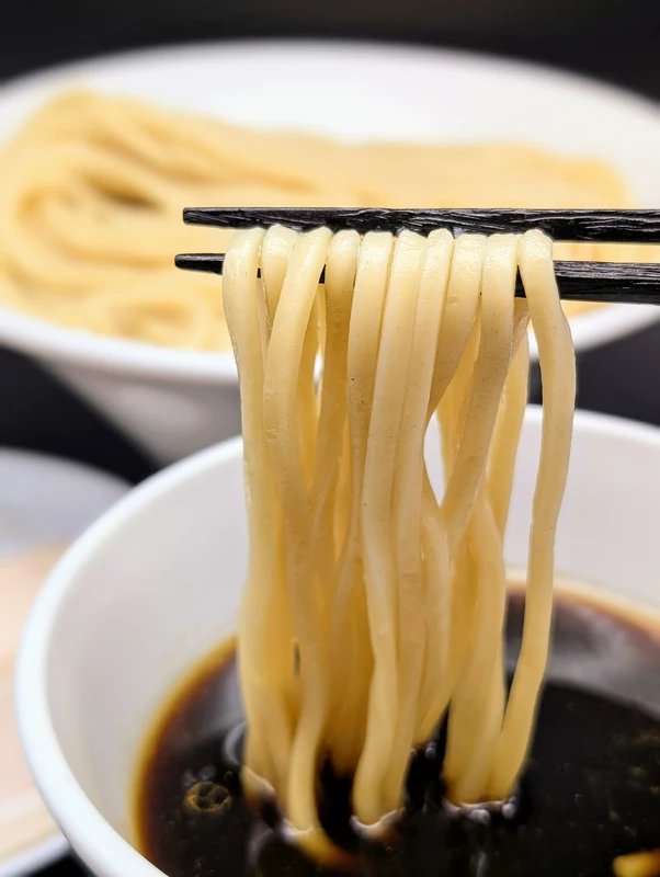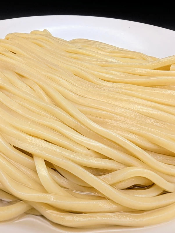 カットは短めで麺肌もつるりと啜りやすく、密度の高い噛み応えの強さが楽しめます。