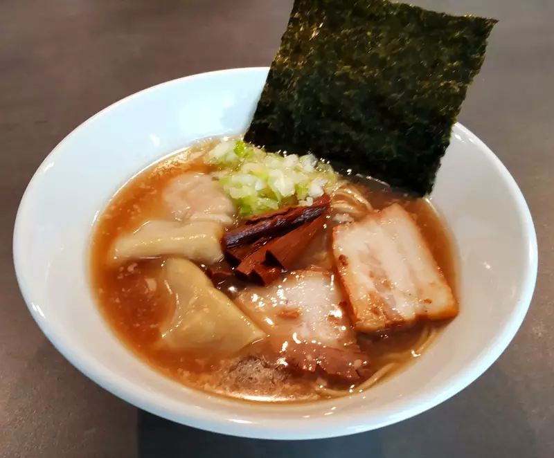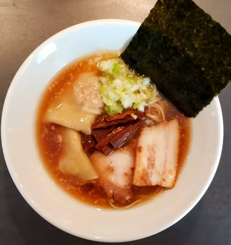 2026年03月25日 奈つやの中華そば もちもち雲呑中華そば(ラーメン・醤油) 凝縮した旨味ともちプル雲呑 貝系と節、干しメインの風味。 動物系とも融合していてものすごい旨味。 複雑になりそうな原材料だけどシンプルに旨い。 ものすごく旨い。そしてスープ完飲。 麺は細ストレート。 ふすま入りで風味もよく、スープとの相性抜群ですごく美味しい。 具材は2種チャーシューとメンマ、雲呑。 チャーシューは燻香を感じるものでどちらもすごく美味しい。 メンマは柔らかめで見た目ほど濃い味つけではなくこちらもまた旨い。 そして雲呑。 冷凍とは思えないもちプル食感で感動レベルに旨いです。 三位一体で抜群に美味しい満足な一杯でした。 ごちそうさまでした。 0 役に立った レビューを共有