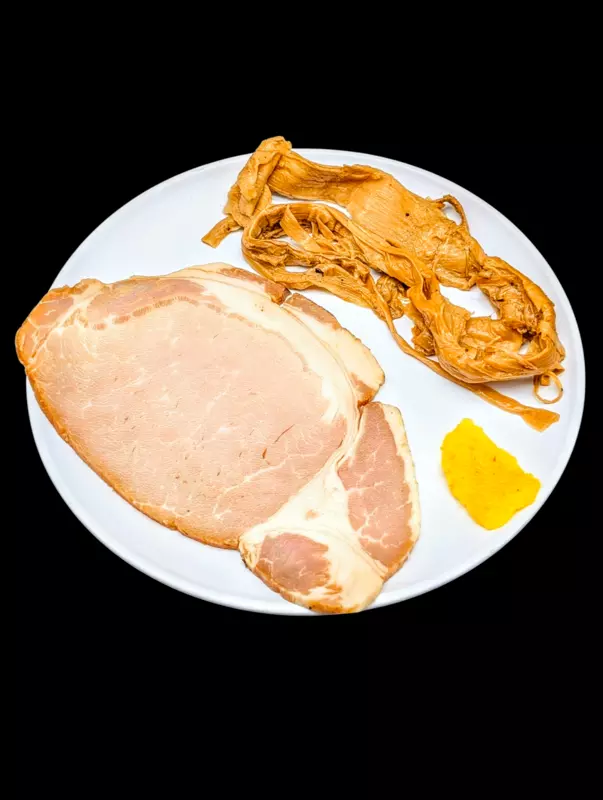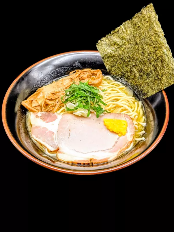 付属トッピングは穂先と茎のつながったジャキジャキ食感の一本メンマ、しっとりソフトな豚ロースレアチャーシュースライス、大判板海苔、柚子皮ペーストの4品。