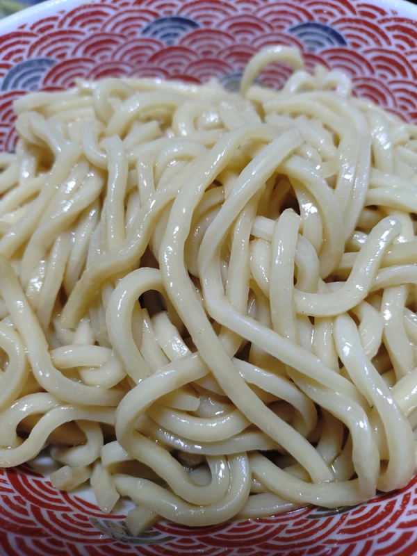 実店舗では注文後に麺棒で圧延し、茹でる直前に麺切カッターを使い手動で麺線に裁断するという打ち立て・切り立ての純手打ち麺が使われているので、