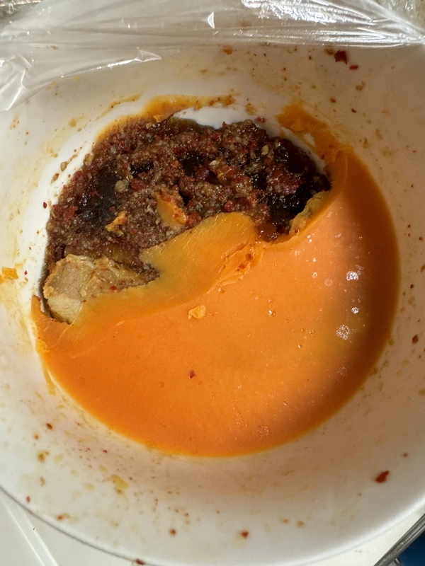 武丸さん楽しみだったのですが他の方のレビューにも書いてある通りスープが油っこすぎて食べれなかったので、冷蔵庫で冷やして油とスープを分離させて油だけ捨ててスープだけにして食べました!油とスープが半々くらいの量でした!油をとったスープはとても美味しく、最後までいただけました。レビュー通り見た目より辛味は少ないです。麺はすいとんを思わせる小麦が力強い感じ。噛みごたえある。あと引く美味しいさでした。ご馳走様でした!