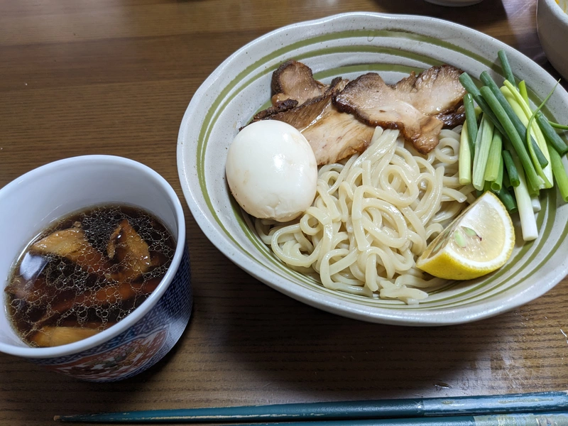 いつも1人前を2人で分けてますが、思いの外叉焼がボリューミー。つけ汁はほんのり甘く、出汁と醤油の香りが良い。叉焼はしょっぱめですが、つけ汁と合わせるとバランス良い仕上がり。麺はつるっと長く、喉越し含めて大好きなタイプ。麺にすだちと一味をかけて味変。〆は残ったつけ汁に海苔を潜らせて白米を食す。控えめに言って最高のつけ麺でした。