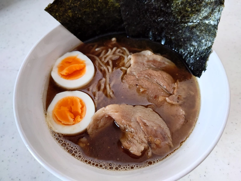 脂っこくて、塩っぱめ、メンマ、チャーシュー、ネギが基本トッピング、お好みで海苔、ホワイトペッパー、ガーリックパウダーが滅茶苦茶合う仕様です。